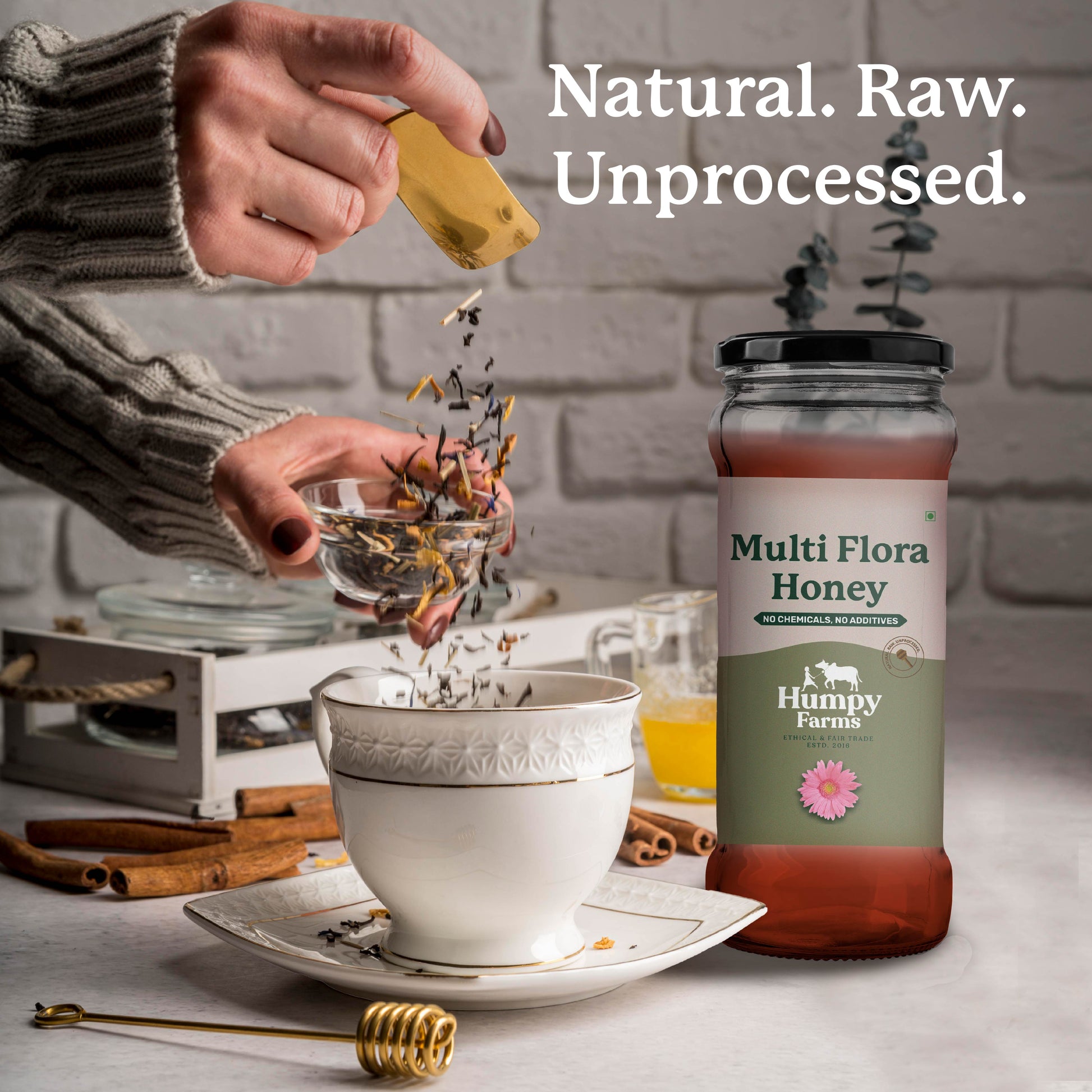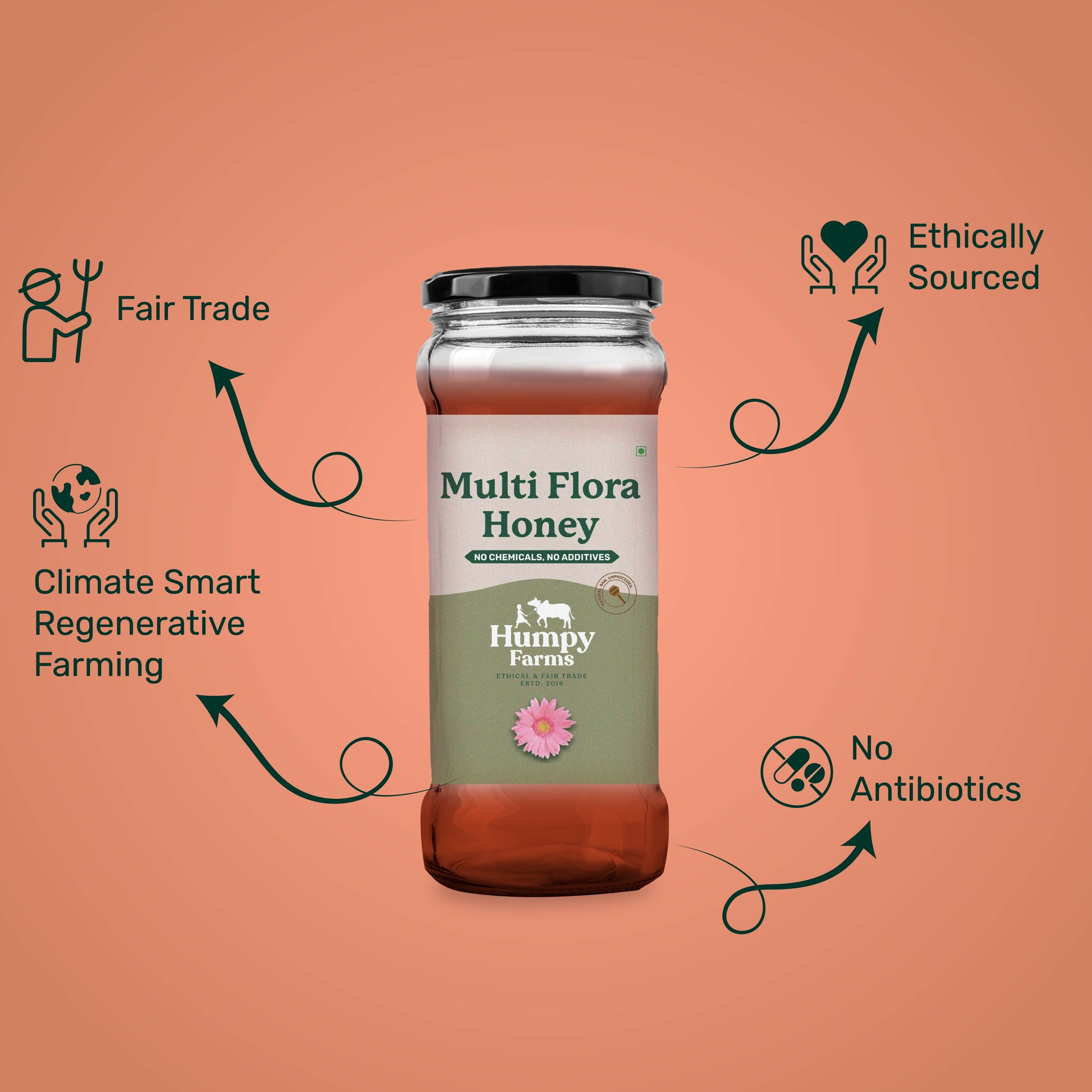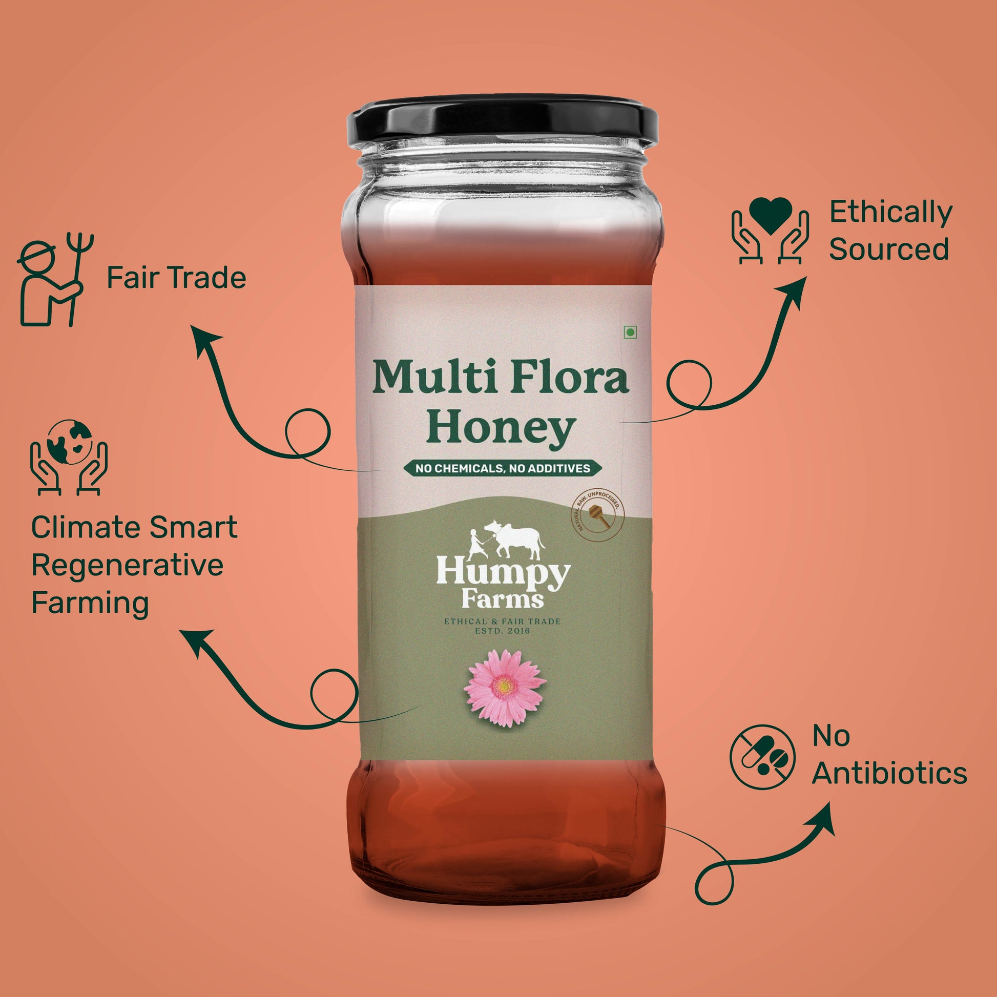 Behold the wondrous marvel of Humpy Farms' Organic Multiflora Honey; a manifestation of the profound interplay between nature and nurture. Harvested from diverse blossoms, this golden elixir captures the essence of life's harmonious dance.